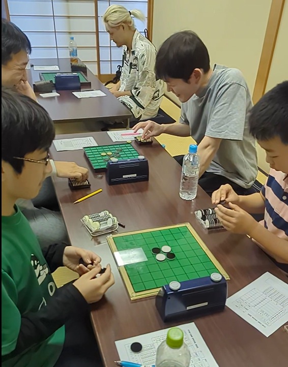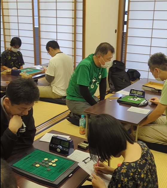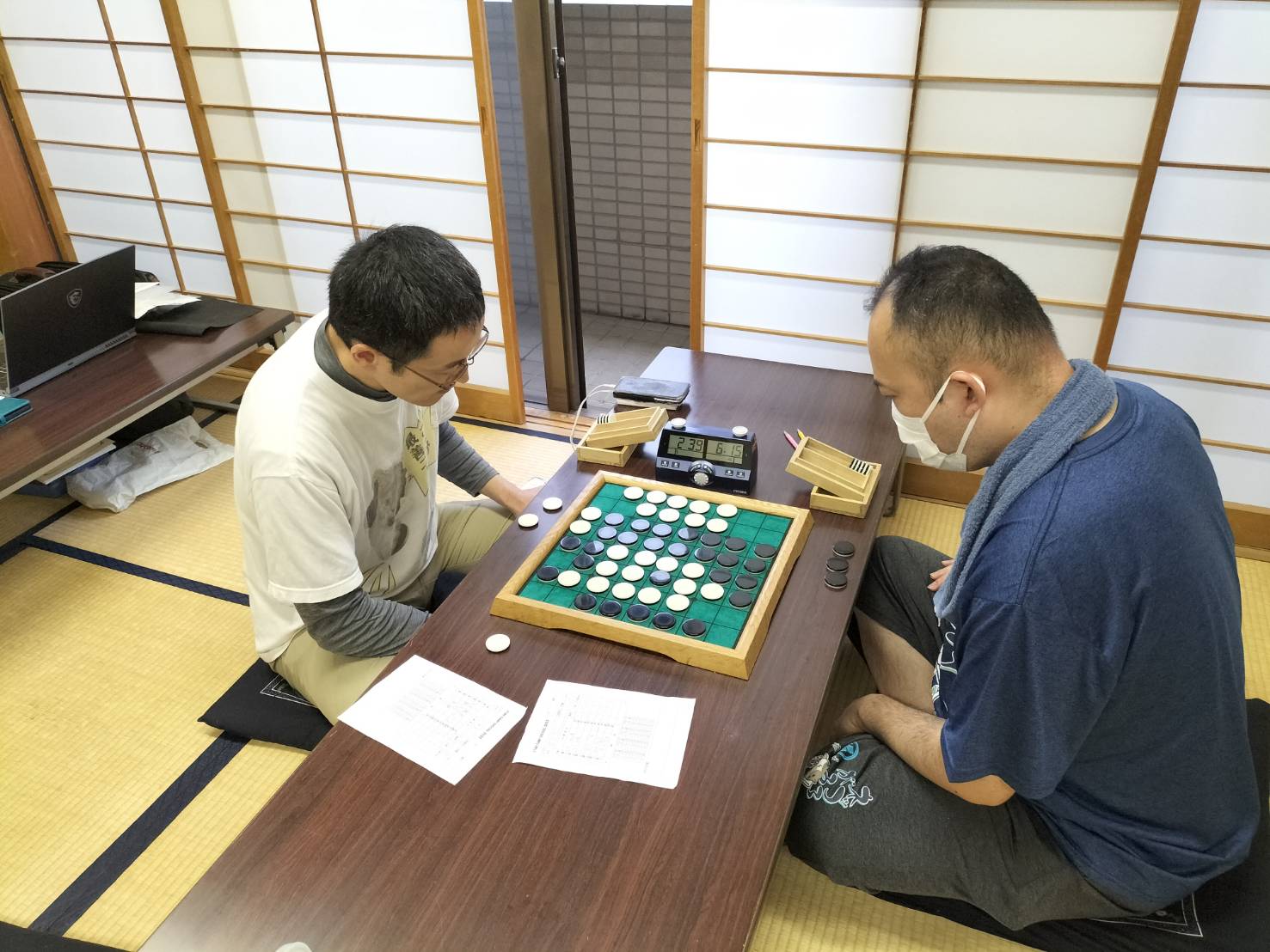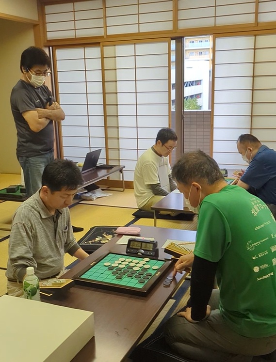 今回の前夜祭は、何と2次会が用意されていました。 その店の名前は、「けむりセカイ」 https://kemseka.simdif.com/ 駅からちょっと離れた場所にあるのですが、私の帰宅ルートにある店でした(汗) 目の前を通り過ぎたことは何度もありますが、立ち寄るのは初めてです。 ちなみに、店の名前の由来は、出てきたおつまみがみんな燻製であることからつけられた ような気がします。 ポテチも燻製で出てきましたから。 実はこの店は、東北の大清水崇典六段とつながりのある店でした。 その店のマスターは、大清水六段が福島のラジオまつり https://www.rfc.jp/radiofes2025/index_0831.html に参加した時に知り合った方で、オセロ大好きマスターでした。店内では無敵のお人です。 店に入ると、マスターが我々の間に入ってきて、さっそくオセロを挑戦にやってきました。 様子を見てみると、「あっうまい」というような手を連発します。 なかなかの打ち手のようです。オセロクエストで鍛えているらしい。 でも、さすがに我々にかなうはずがありません。(註釈:2次会参加者は全員大人有段者) やがて、何局か打っている間に、マスターが勝ったら級位を認定するっていう話になりました。 級位の認定料は負けた人の払いで(笑) さすがに勝てるはずがないと思っていたら・・・N初段がパーフェクトに仕留めた直後、 T五段が意外と手こずっていました。 私が見たときは、終盤にパスをさせて偶数理論を放棄する局面を作っていました。 やばい。級位献上か(大汗)。 しかし、T五段は読み切っていたのでしょう。何とか4石差で逃げ切りました。 しかし、その後もマスターの挑戦は続きました。 結局全員(註釈:2次会参加者は10人)と対局して、店を出たのは25時を回っていました。 明日は皆さん、寝不足で対局かあ~。 ということで、いよいよ2日目は、交流戦です。