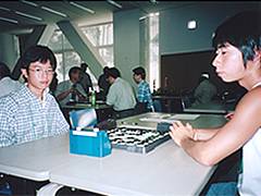 この全日本オセロ選手権大会の特徴は、北海道から九州まで、老若男女を問わず、全国オセロファン代表による年1回のオセロ祭りの色彩も濃厚だということです。天の川の両岸にある牽牛星と織女星が年に1度相会するという七夕祭りのように、普段会ったこともない日本全国各地のオセロ強豪が年1回一堂に会してオセロを楽しむ。マスターの部40才以上、青年の部39才以下の男女が対象です。北海道の小学生と九州の小学生がオセロを打つ!