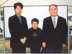 一方、同時進行の大会の優勝者には賞品の他に2時に来れば待たずに必ず世界チャンピオンと打てる切符を発行。2時に集まった優勝者8人で、この最終ラウンドで午前から展示してあるデラックスオセロを、善戦1位者に進呈する方針。大人の男女、女子高生(3〜4人の友達の静かな応援つき)、中学生、小学生と多彩な8名で、何と小学生3年生の南部尊之君(写真)が善戦1位(8石対56石)となり、