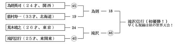 3度目の正直、滝沢信行、為則に大技1本勝で念願の初優勝