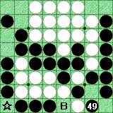 以下、実戦の経過を見て頂ければ明らかですが、53と打った時点で、B,☆の2つが黒の余裕手!