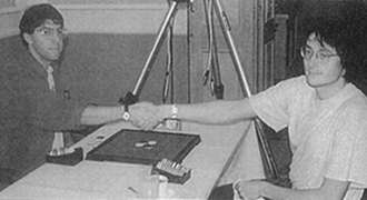 全米チャンピオンになったシェイマンが、初めて世界選手権決勝の檜舞台に踊り出たのは弱冠16才の時で、全日本チャンピオン・谷田邦彦(15才)に連敗(1982)。以来、常に世界オセロ界のトップ集団の中を走り続け、ペンシルバニア大学数学科在学中の時は、大学の費用でオセロ研究留学生として来日、そうした基礎的研究に費用を惜しまない所に、アメリカという国の計り知れない奥深さが感じられます。在学中に弁護士の資格も取り、卒業後は弁護士として世界を舞台に活躍しながら、トップオセラーとしても大活躍。第15回世界選手権では13勝全勝で予選1位(準決勝でラルに負け)、第16回世界選手権では10年振りに再び決勝進出(タステに負け)、そして今回第17回世界選手権で見事初優勝!11年間の努力は実り、大輪の花を咲かせたのでした。このパワー!この若さ(27才)!実際、その後のシェイマンの活躍も素晴らしいものでした。