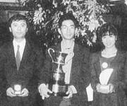 (3月27日.日曜)には、シードの全日本チャンピオン・滝沢信行、前名人・手塚博久や、地区代表の滝沢雅樹(29才.新潟.第9代世界チャンピオン.七段)、槙本浩之(28才.東海.四段)、亀本修(26才.神奈川.第9代少年少女チャンピオン.四段)、駒形真之(25才.初出場で東京代表.四段)、冨加見友博 (20才.北海道.二段.初出場)…等ベテラン新鋭計16名が熱演を展開。優勝したのは22才の若武者・中島哲也(北関東.四段)、出場3回にして2度目の優勝の快挙!