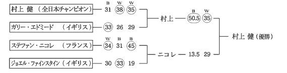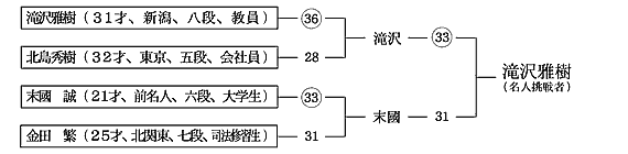 決勝(末國対村上)、準決勝(末國対中島、北島対村上)、準々決勝(村上対坂口)