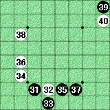 しかし、実戦では青木はノータイムで を左辺B打ち(一見好手に見える悪手)していしまい、以後はシェイマンのパワーのみが目立つ展開になり、最後は痛烈な3連打  を食ってしまいました。
