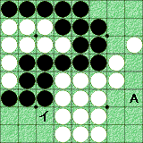(正解)黒A(黒4石リード)迷ったらA打ち(オセロ格言)。
